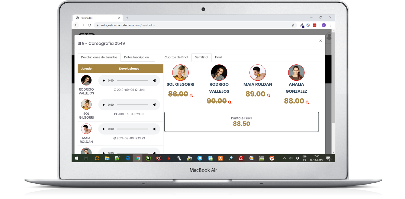 Importante: Una vez clasificados los participantes pueden modificar la coreografía original enviada por video. El paso siguiente es completar el